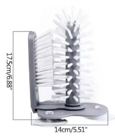 El diseño de doble cepillo facilita la eliminación de la suciedad más rebelde sin dañar la superficie del vaso. El cepillo grande limpia la pared interior, mientras que el cepillo pequeño se encarga de la parte exterior, asegurando una limpieza completa y sin áreas muertas. La disposición estratégica de los cepillos asegura que cada parte del vaso reciba la atención necesaria, dejando tus cristalerías perfectamente limpias y sin rayones.
